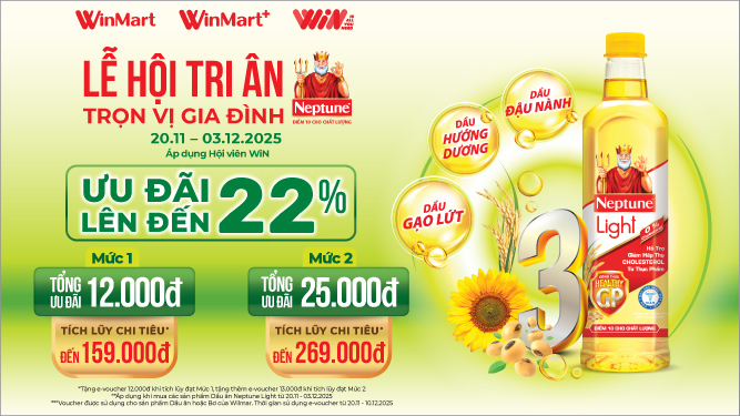 Tham gia ngay để săn ưu đãi: Chương trình Tích Lũy Chi Tiêu cùng Thương hiệu Neptune, diễn ra từ ngày 20/11/2025 đến hết ngày 03/12/2025, chi tiết: